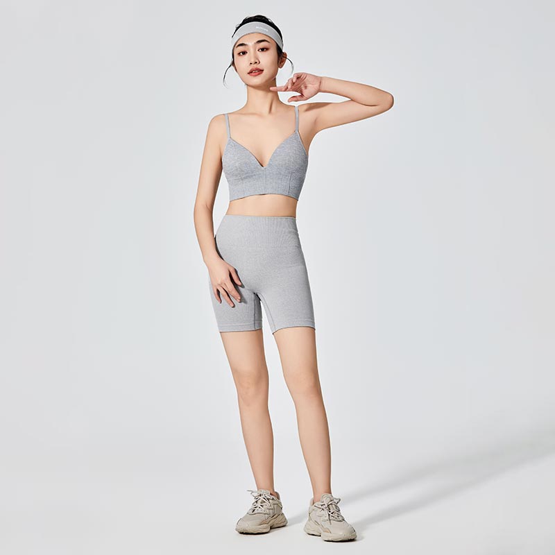 यिवू टेक्सटाइल की फैशनेबल और उच्च गुणवत्ता वाली ग्रे डीप वी-नेक स्पोर्ट्स ब्रा- ग्राहक के वर्कआउट वॉर्डरोब के लिए एकदम सही अतिरिक्त!