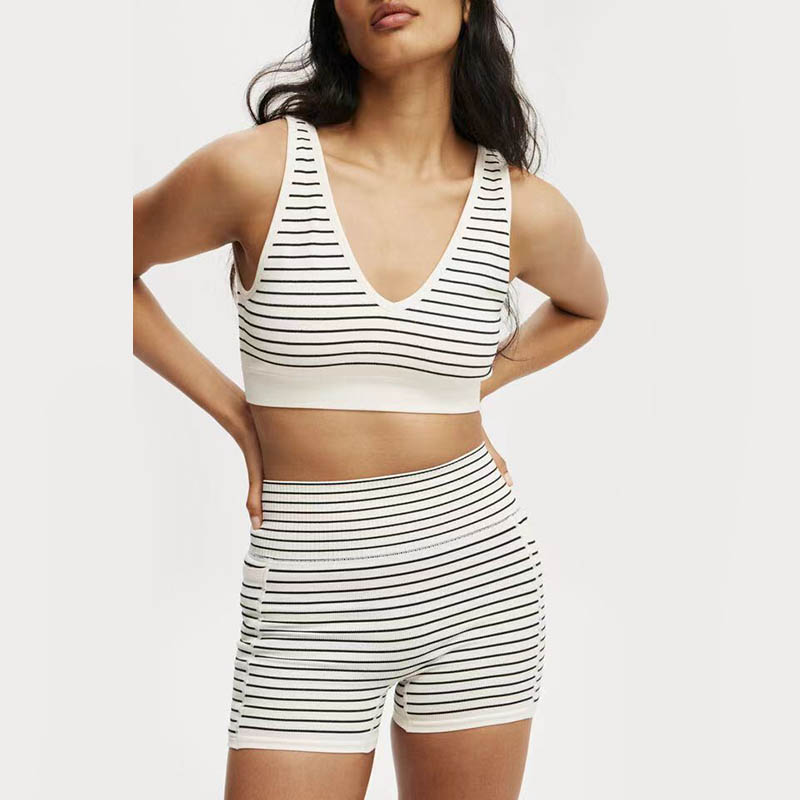 हमारे उत्पाद में एक निर्बाध डिज़ाइन है जो शारीरिक गतिविधि के दौरान अधिकतम आराम सुनिश्चित करता है। लचीला कपड़ा एकदम सही फिट की अनुमति देता है जो चलते समय ग्राहक के शरीर के आकार के अनुकूल हो जाता है। इस महिला सीमलेस स्ट्राइप्ड स्पोर्ट्स ब्रा के पीछे वी-नेक और यू-आकार का डिज़ाइन बहुत ही आकर्षक है और नीरस नहीं लगेगा।